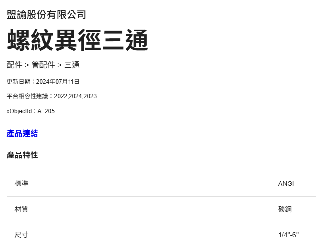 - 元件規格:請選擇至少一個元件規格,如尺寸、流量…,並填入正確的規格數值。若要新增一個以上的元件規格,請點擊此欄下方「+新增元件規格」按鈕