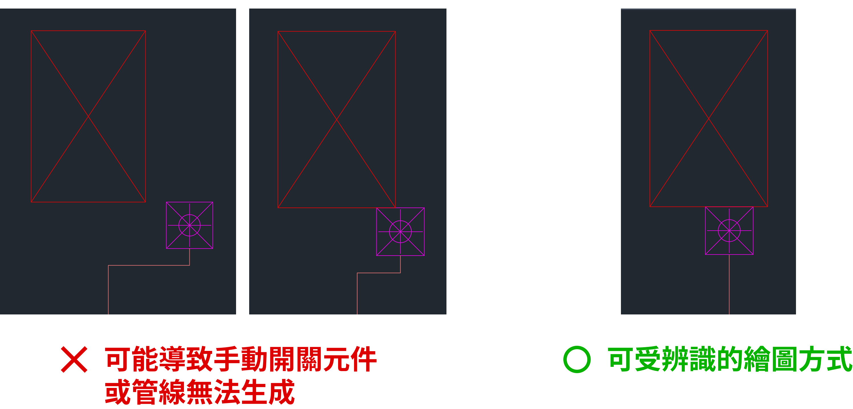 ✅ 撒水支管的繪製與可辨識範圍包含: