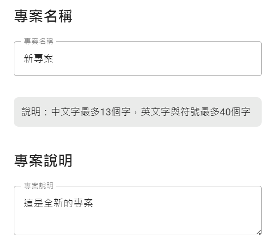 填寫專案說明,可幫助您更好辨識特定的專案資訊