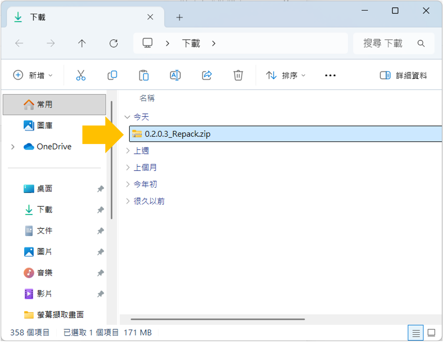 - 前往本機的「下載」資料夾,找到您所下載的xModel Designer安裝檔(zip壓縮檔),檔名為「您所選擇的版本號_Repack.zip」壓鎖檔,並將它解壓縮