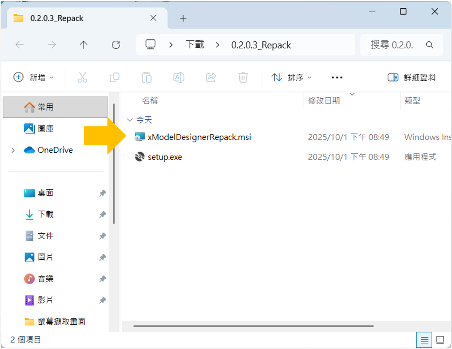 - 解壓縮之後,請開啟資料夾內的「xModelDesignerRepack.msi」安裝檔,依照指示開始安裝程序