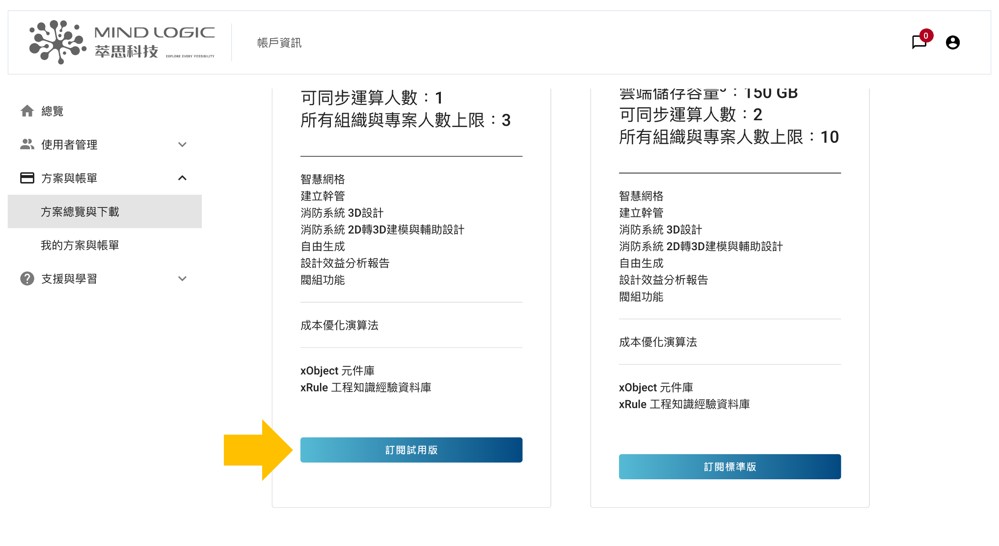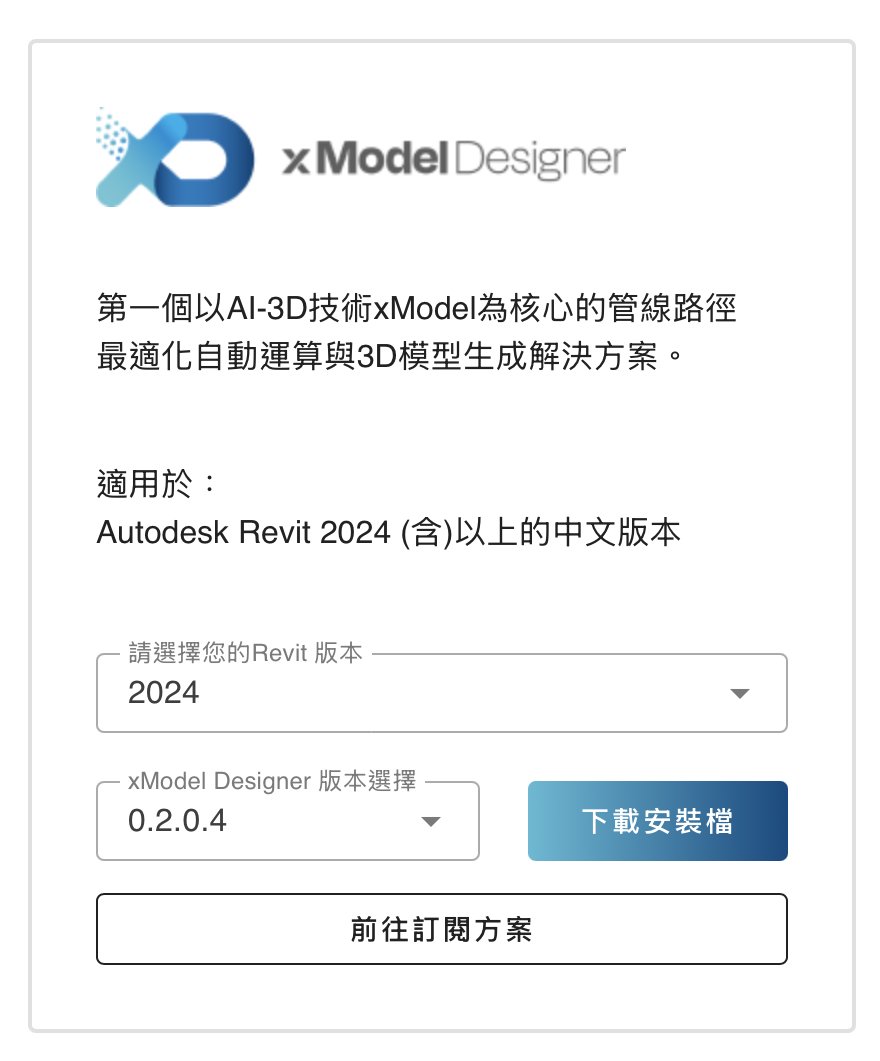 - 在xModel Designer的方案下方,點擊「前往訂閱方案」按鈕
