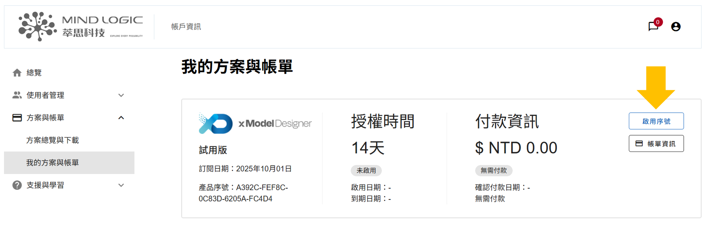 xModel Designer 使用指南 訂閱與啟用方案