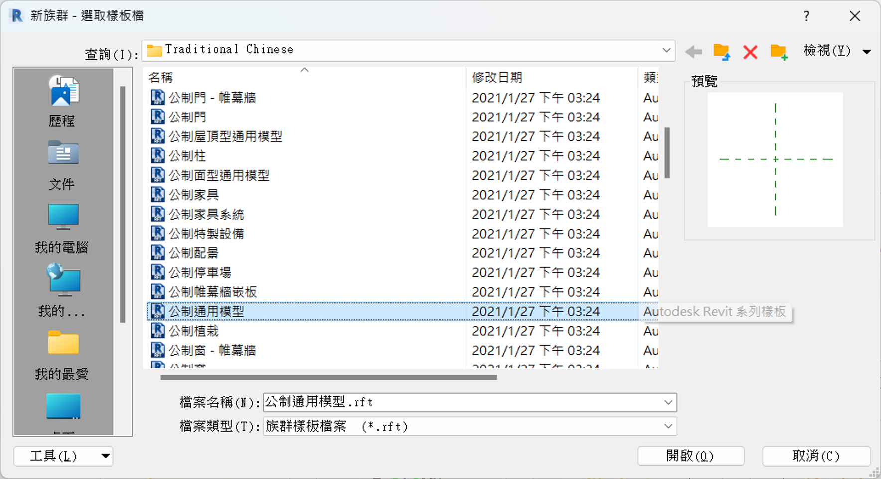 若是欲建置元件的放置方式是屬於貼牆的元件,建議可以選用Metric Generic Model face based,若是元件放置方式屬於貼地的元件,則可以選用Metric Generic Model floor based。