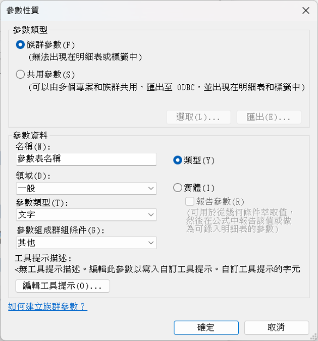 - 新增參考用的「參數表名稱」的參數