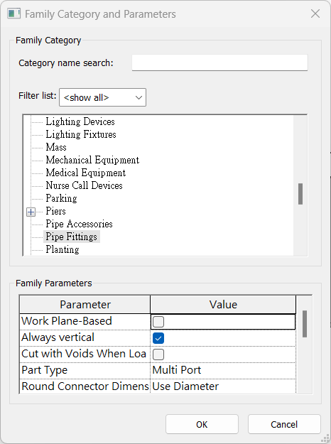 管配件類型的元件並沒有局限放置於牆面或樓版面上的要求,因此建議可以選用Metric Generic Model樣板建置元件。