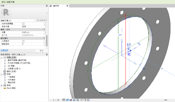 - 參數化的配件型元件:附在管、風管與電纜架等需要配合管徑大小縮放的元件